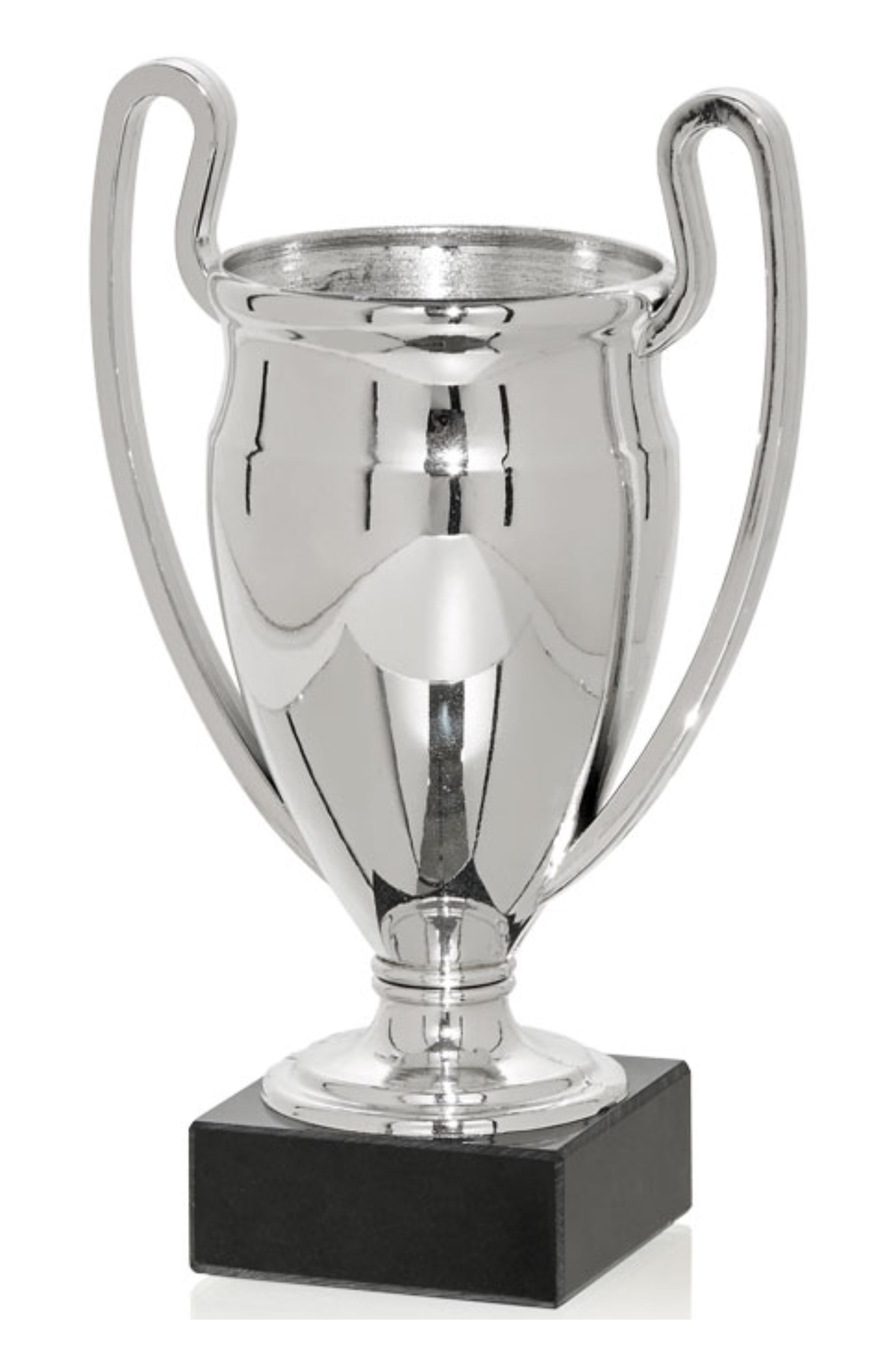 Diseñada en ABS metalizado plata sobre una peana de mármol.