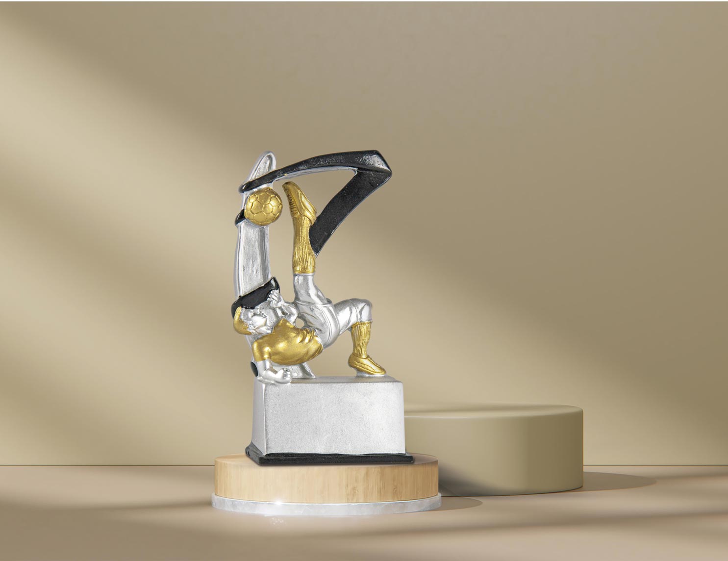 Trofeo de fútbol, fabricado totalmente en resina y pintado a color.