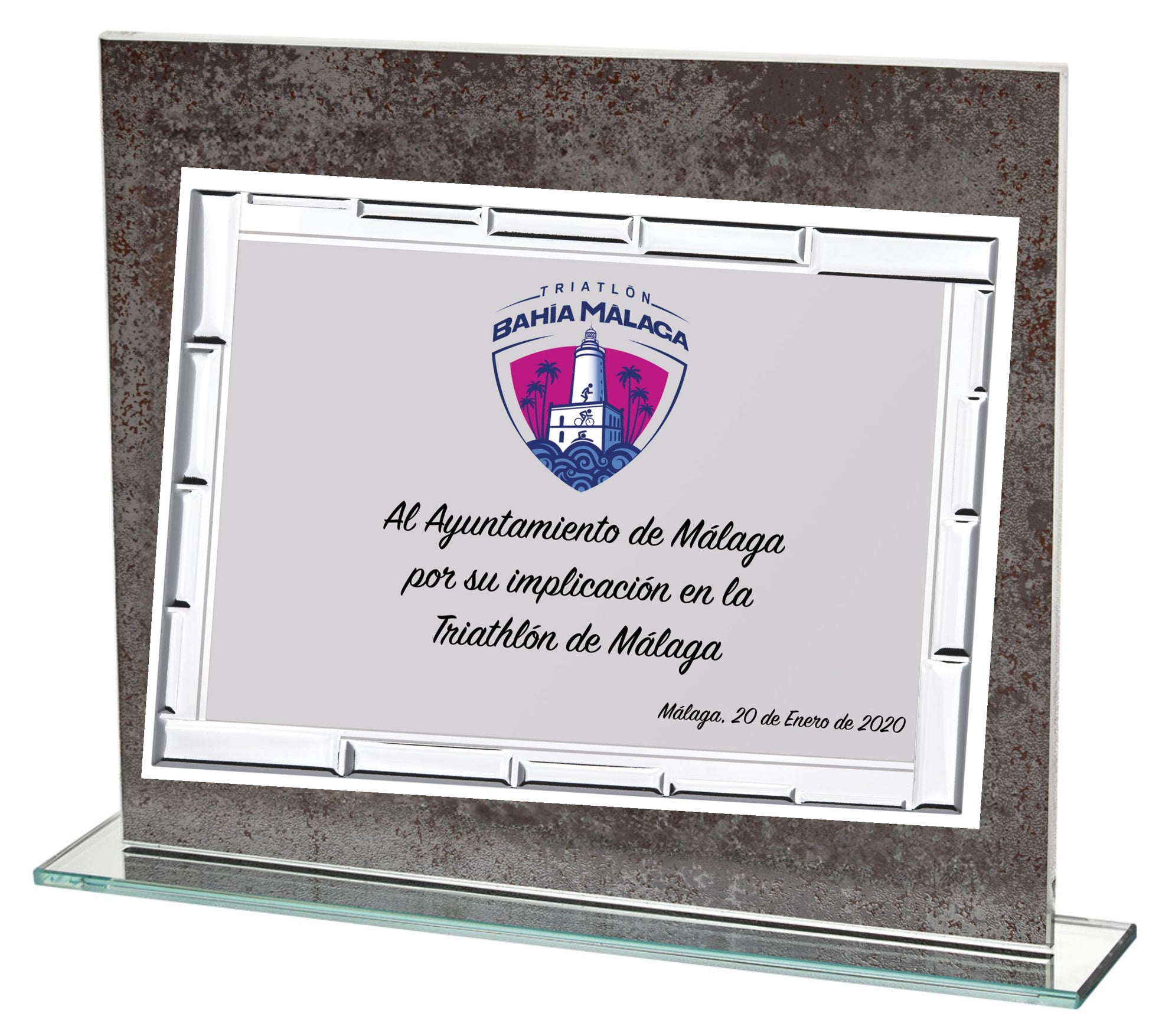 PLACA DE CRISTAL CON FONDO GRIS